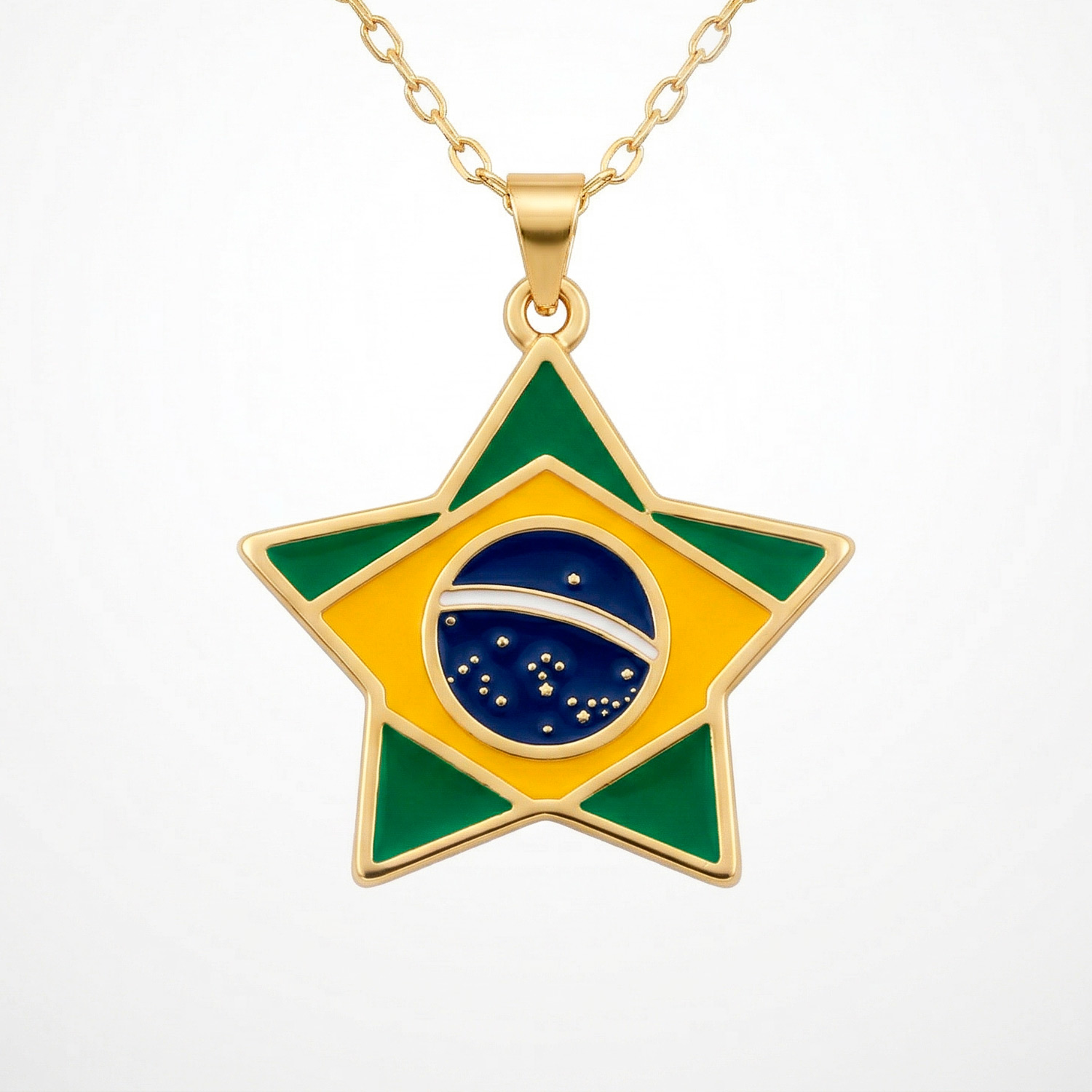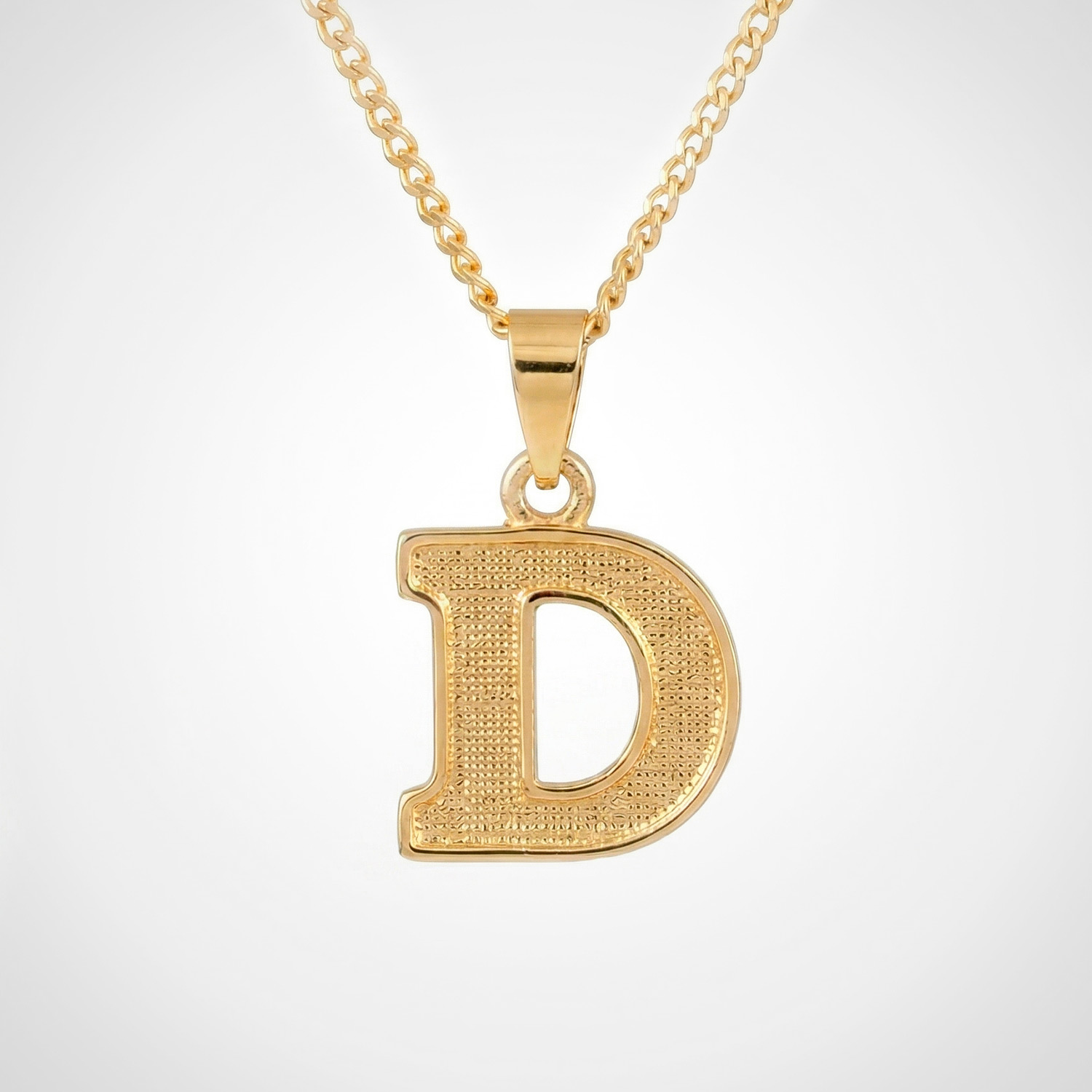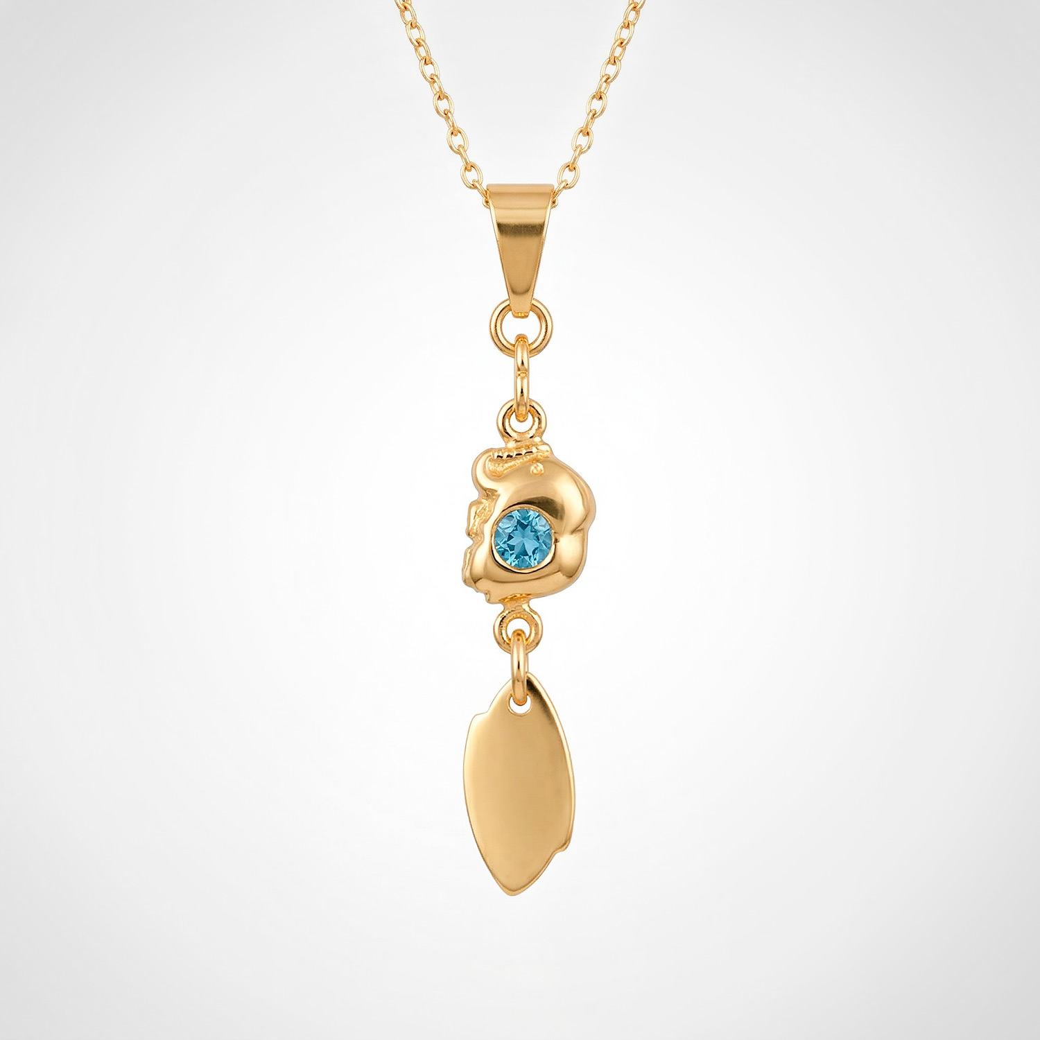 Dije enchapado en oro 18k con acabado pulido y radiante. Un básico de lujo, versátil y elegante para cualquier ocasión.