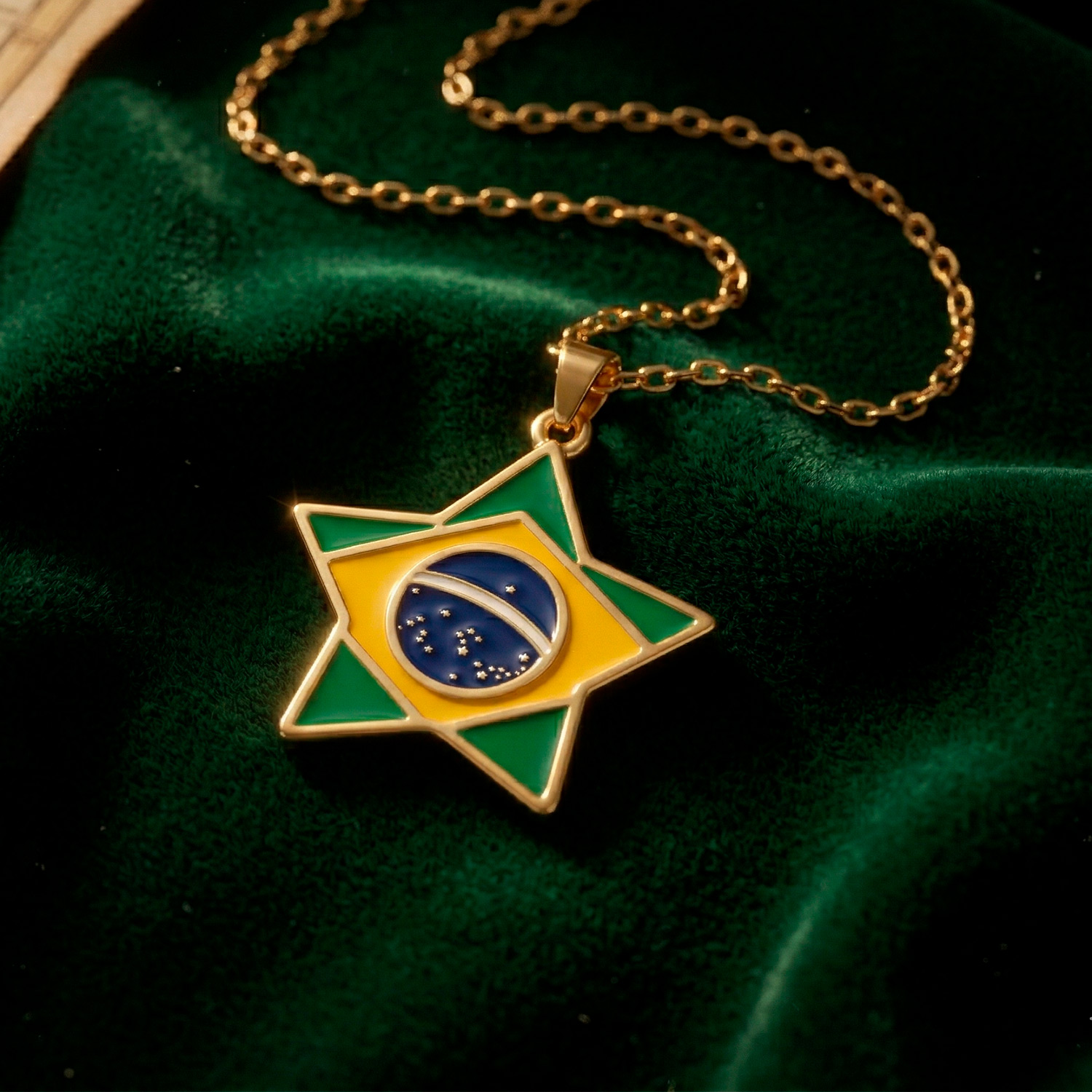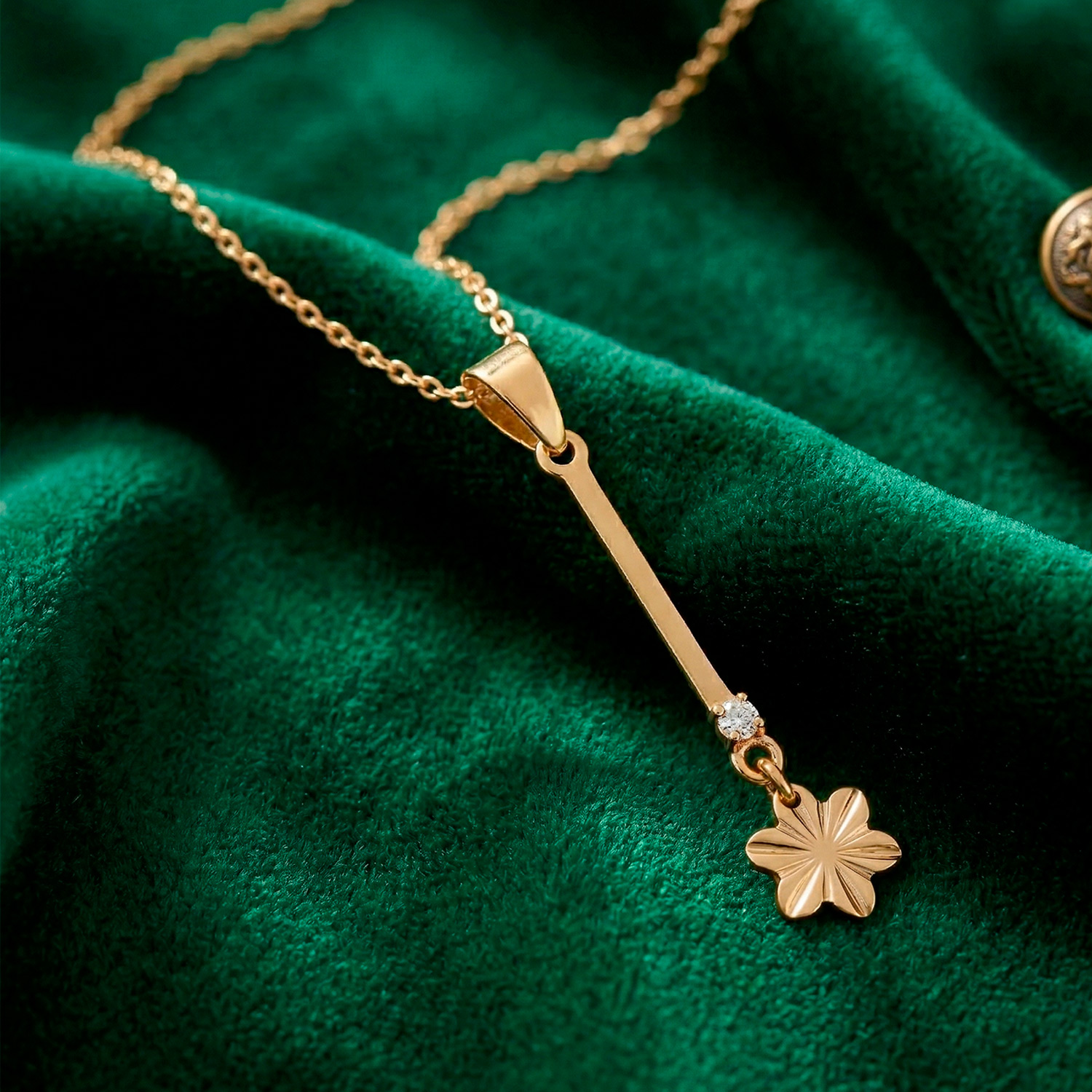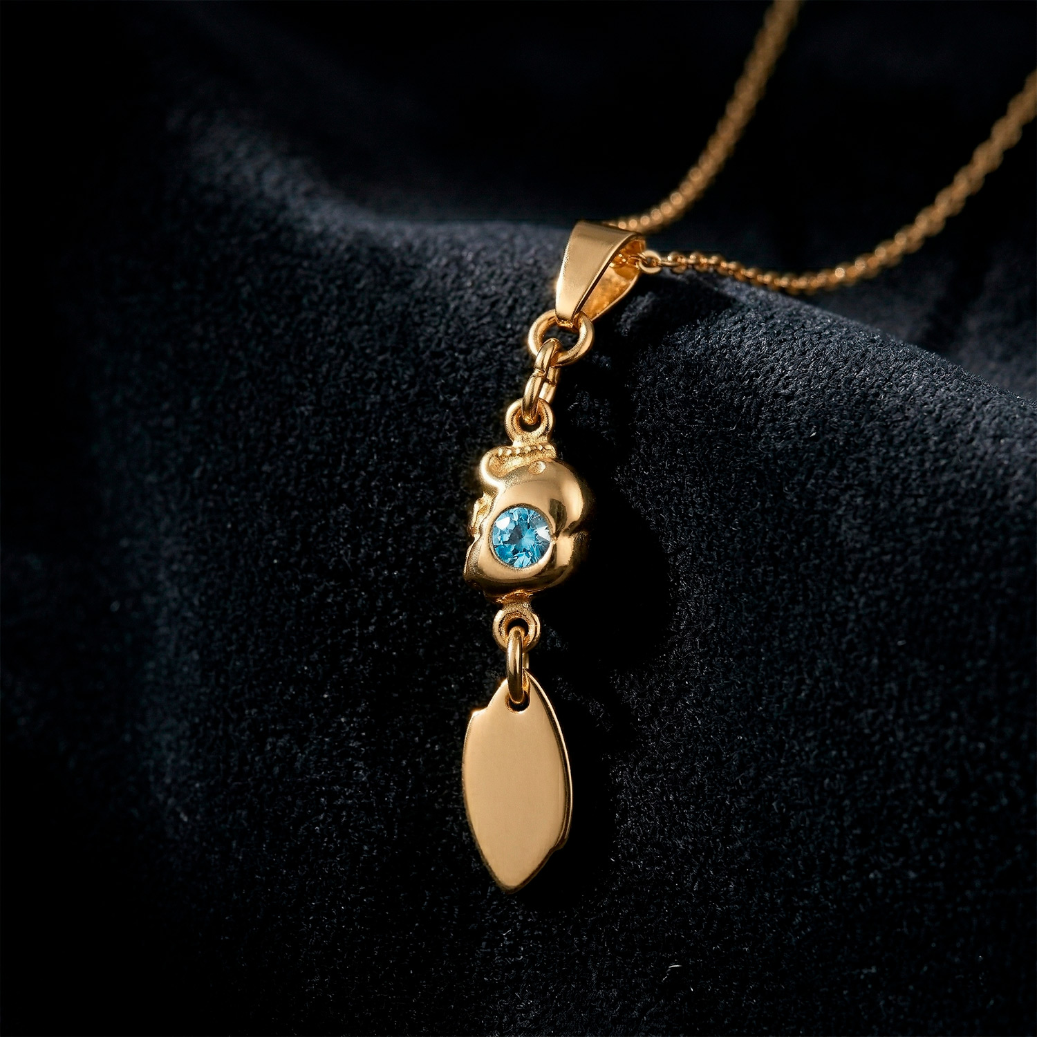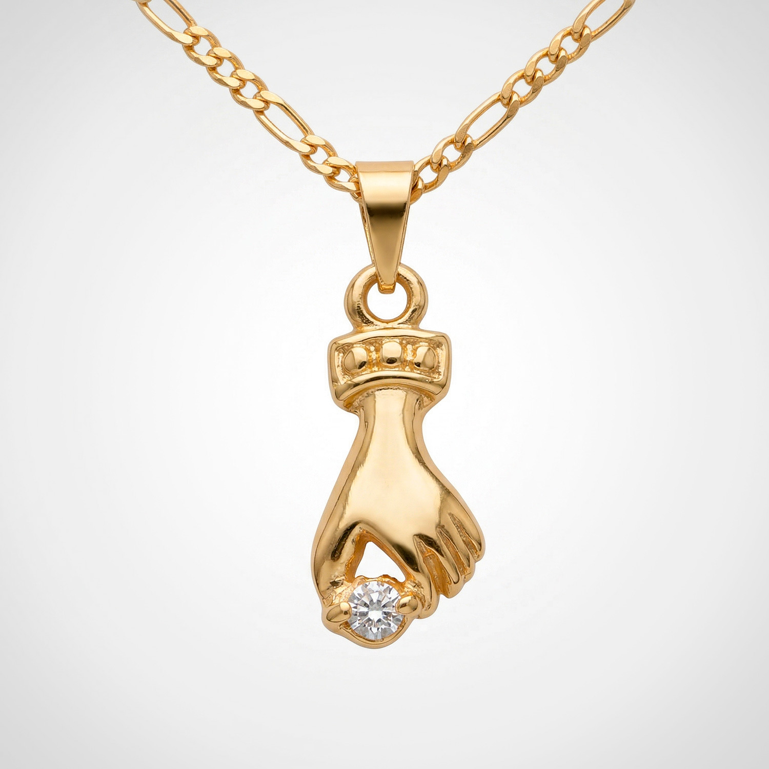 Dije enchapado en oro 18k con acabado pulido y radiante. Un básico de lujo, versátil y elegante para cualquier ocasión.