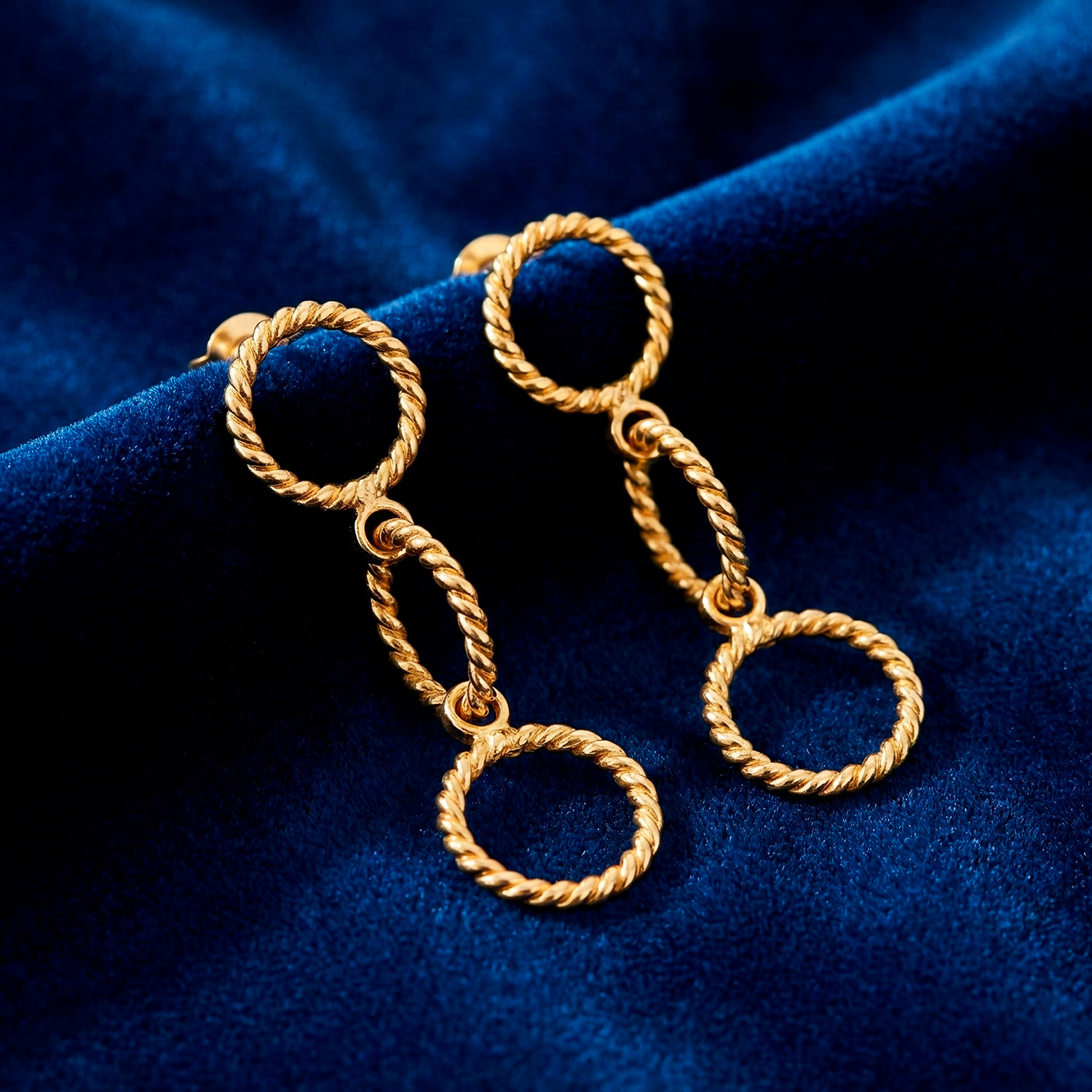 Aretes largos enchapados en oro con eslabones de diseño trenzado. Una joya versátil con un acabado artesanal impecable.