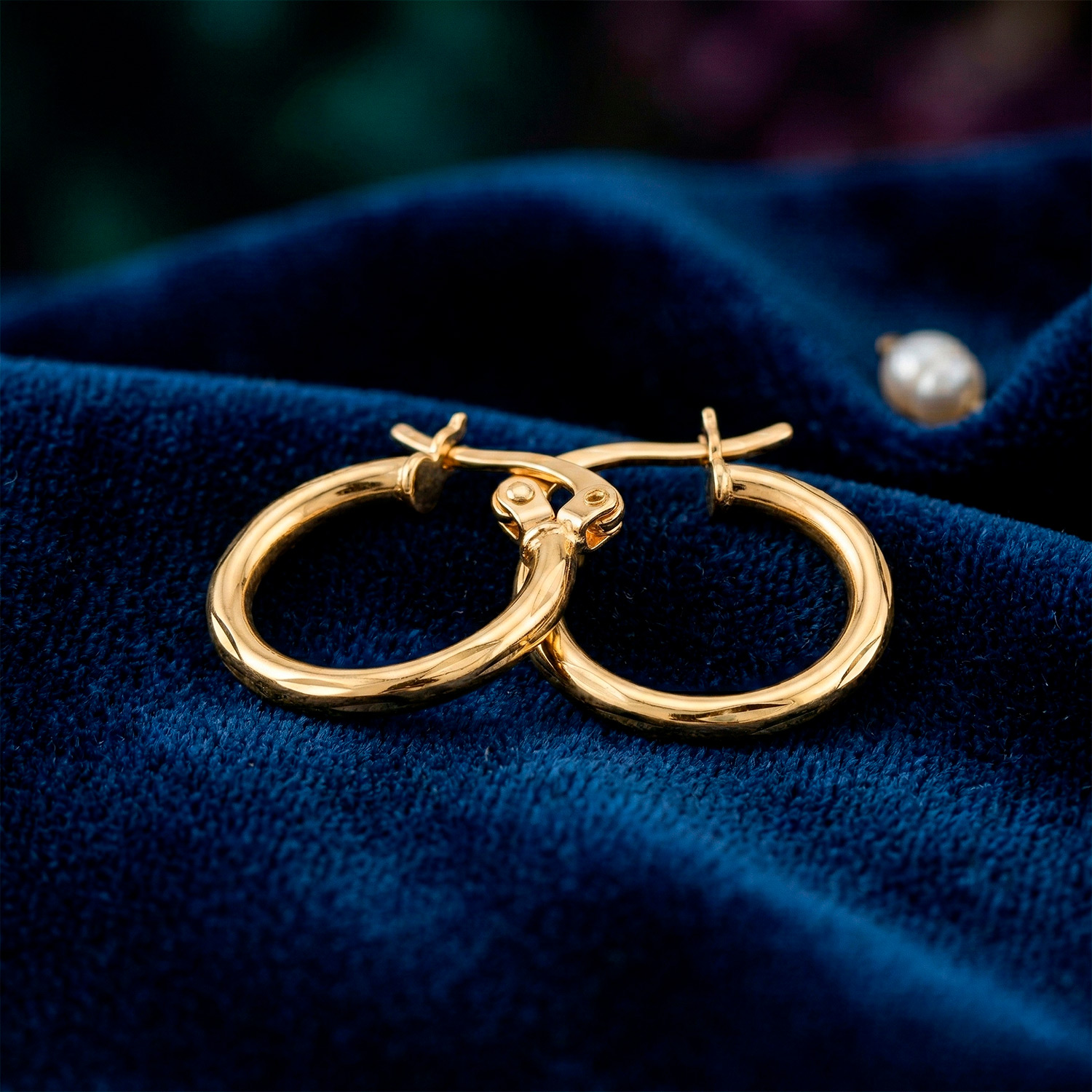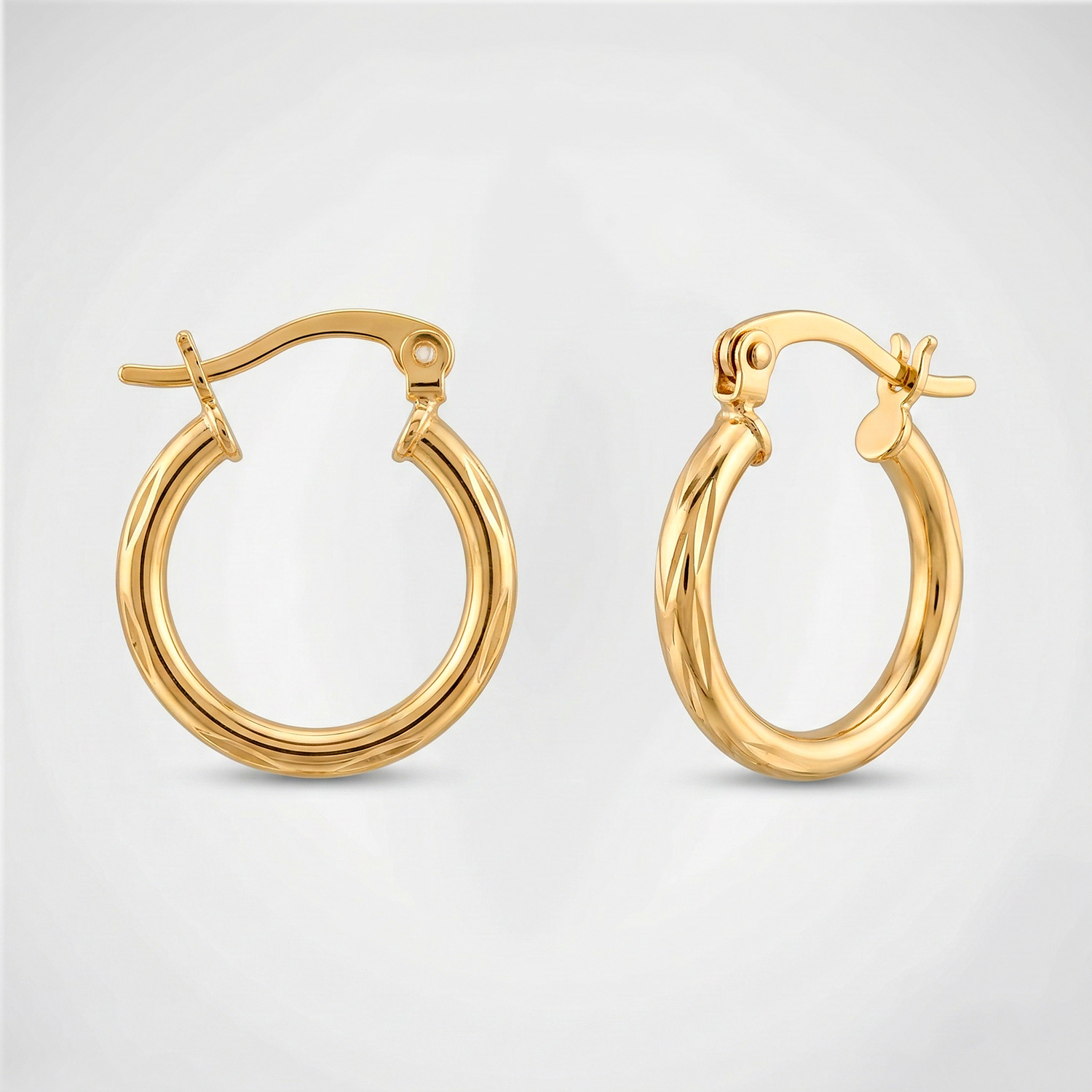 Argollas enchapadas en oro con diseño tubular y tallado facetado. Una joya esencial, ligera y con un resplandor excepcional gracias a su acabado labrado.