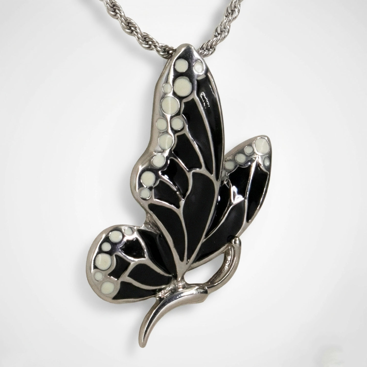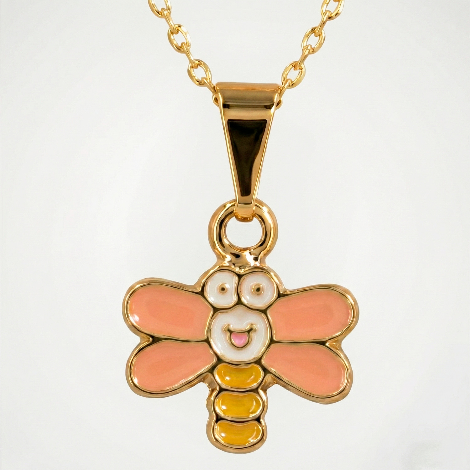 Dijes de mariposa en acero inoxidable con relleno de resina de colores. Un diseño resistente, juvenil y vibrante, perfecto para un look fresco.