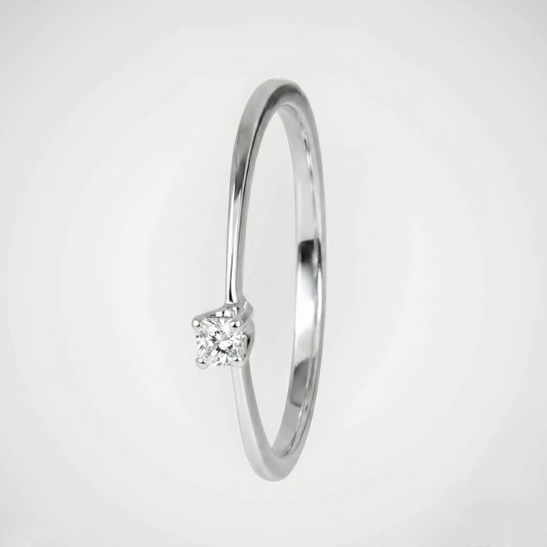 Anillo fino enchapado en plata con un pequeño cristal cuadrado central. Un diseño minimalista, ligero y atemporal.