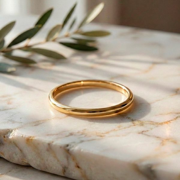 Alianza lisa enchapada en oro 18k con acabado brillante. Un diseño clásico y minimalista que simboliza el compromiso eterno con elegancia y sofisticación.