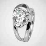 Anillo ancho de acero con pavé de cristales blancos y diseño de dos flores en tonos rosa y azul. Una pieza deslumbrante, colorida y de gran volumen.