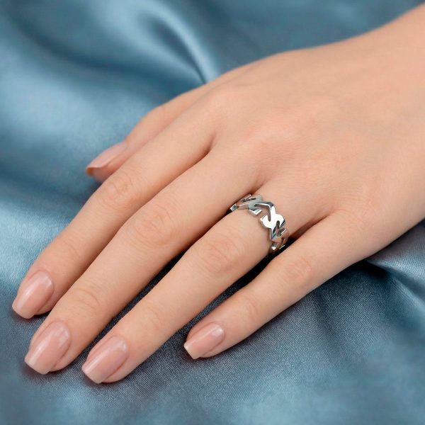 Anillo de acero con diseño calado de inspiración tribal. Una pieza moderna, ligera y con mucha personalidad para el uso diario.