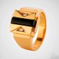 Anillo geométrico enchapado en oro de 18k con piedra negra central. Diseño audaz y moderno que expresa personalidad y elegancia.