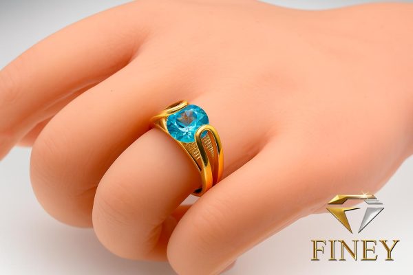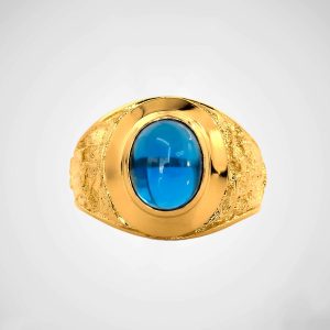 Un anillo robusto y elegante, elaborado en aleación hipoalergénica con baño de oro de 18k. Destaca una piedra cristal azul aqua circular, . Su diseño sobrio lo convierte en el complemento ideal para quienes buscan distinción y carácter en una joya única.