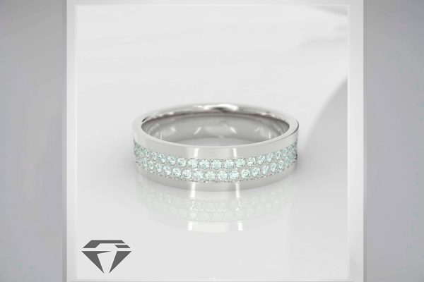 Anillo de acero inoxidable con doble hilera de cristales brillantes. Un clásico moderno de elegancia duradera.