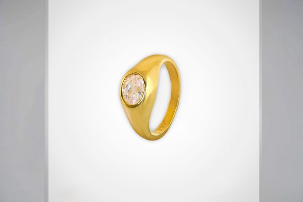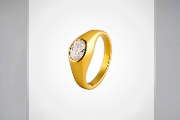 El anillo Luz Serena, parte de la colección Golden Core, es una oda a la simplicidad refinada. Elaborado en aleación y enchapado en oro de 18k, su diseño minimalista destaca una piedra ovalada clara, incrustada en una base suave y pulida que abraza sutilmente el dedo.