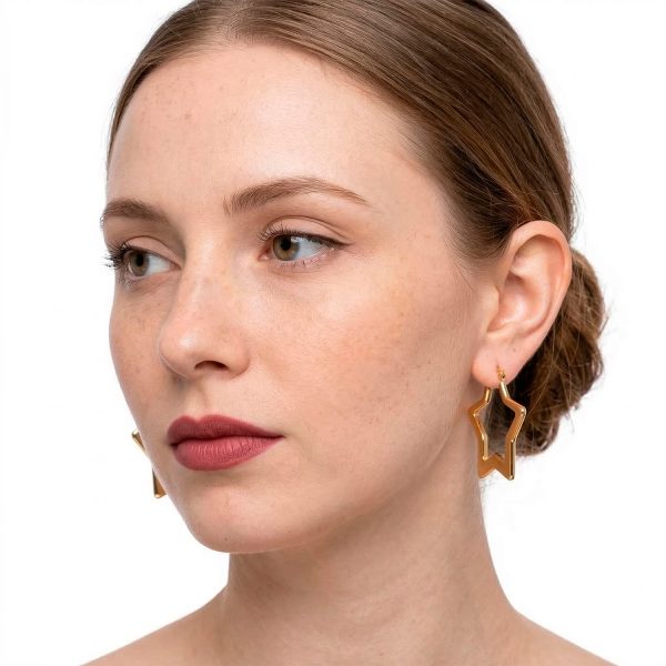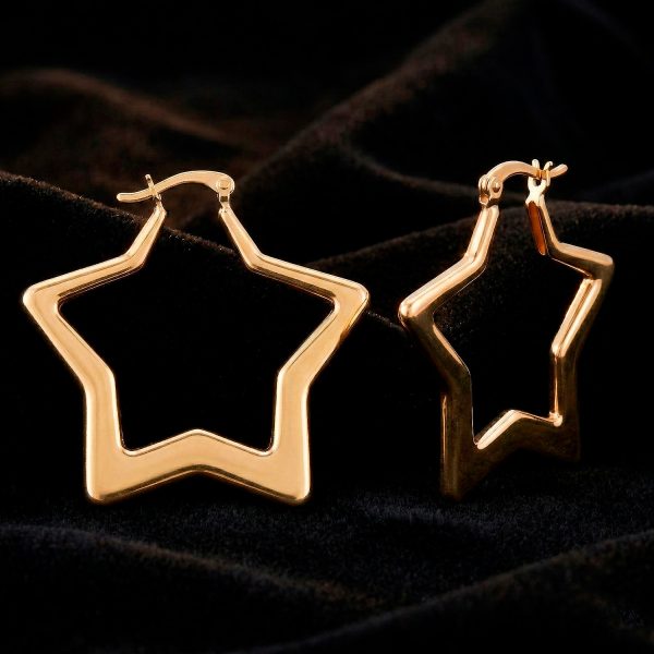 Argollas enchapadas en oro con silueta de estrella y acabado pulido espejo. Una joya moderna, ligera y con un diseño simbólico deslumbrante.