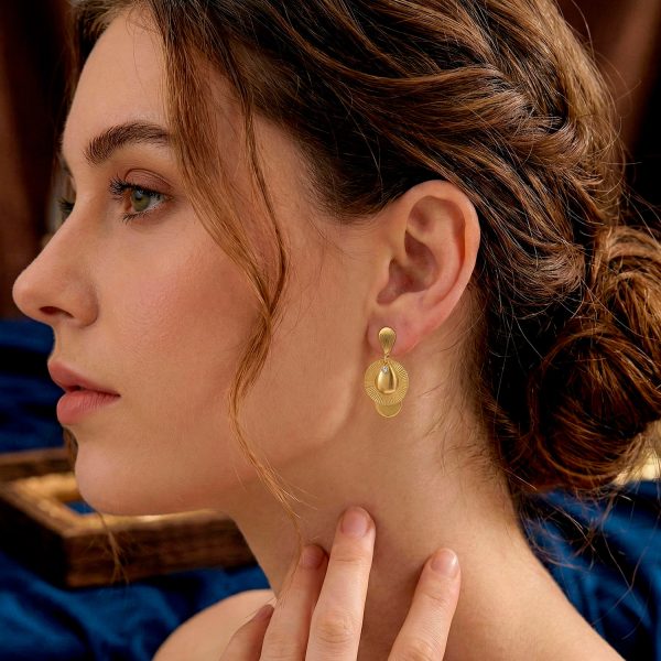 Deslumbra con estos aretes largos enchapados en oro 18k. Su diseño geométrico fusiona texturas rayadas y acabados pulidos con un delicado cristal central, aportando un toque de luz y sofisticación moderna a tu estilo.