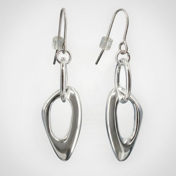 Aretes largos enchapados en plata con aro trenzado, detalles de esferas y una elegante cascada de cadenas. Una joya de diseño artístico, ligera y con un movimiento encantador que realza el rostro.