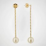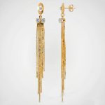 Aretes largos enchapados en oro con detalles de circonias y cascada de cadenas finas. Una joya de lujo con movimiento excepcional.