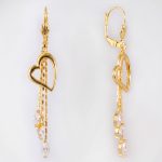 Aretes largos enchapados en oro con diseño de media luna corazón pulida y gota martillada texturizada. Una joya bohemia y sofisticada, con un movimiento ligero y un acabado artesanal impecable.