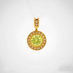 Dije circular enchapado en oro de 18k con piedra central color citrino rodeada de cristales brillantes. Un toque de luz y distinción.