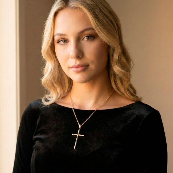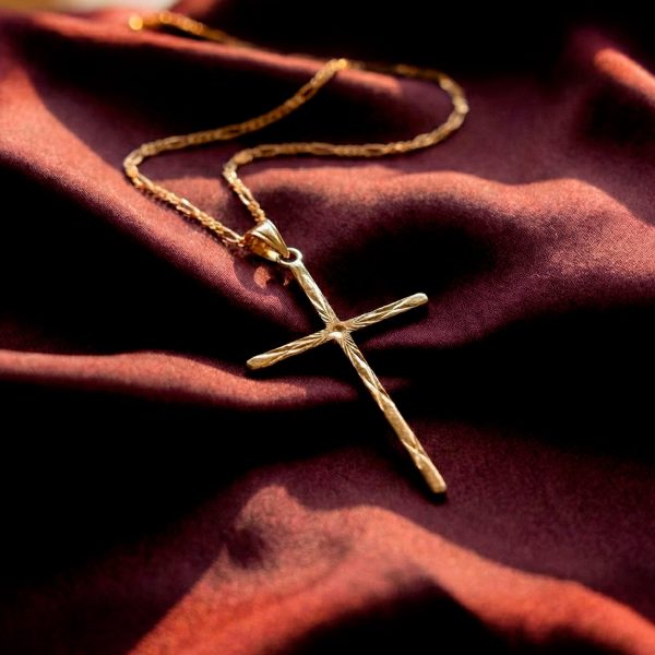 Dije de cruz enchapado en oro de 18k, elegante y delicado. Ideal para lucir con cualquier atuendo y mostrar tu fe. ¡Un símbolo atemporal de devoción y estilo!