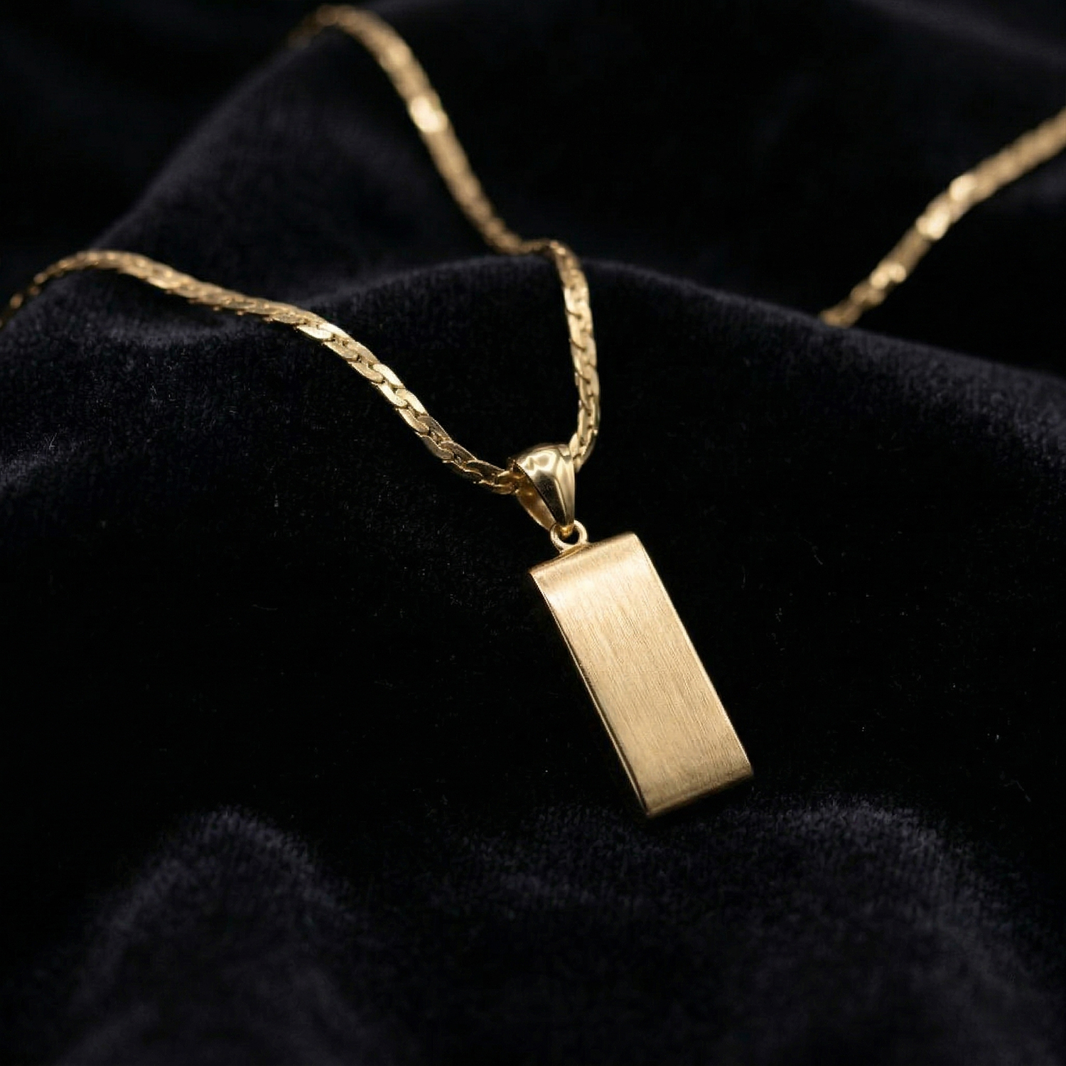 Dije enchapado en oro 18k con acabado pulido y radiante. Un básico de lujo, versátil y elegante para cualquier ocasión.